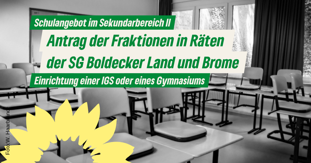 - Die Mitglieder der Räte der SG Boldecker Land und der SG Brome beantragen die Errichtung eines Gymnasiums auf dem Hoheitsgebiet der beiden Samtgemeinden, ergänzt um ein Haupt- und Realschulangebot.